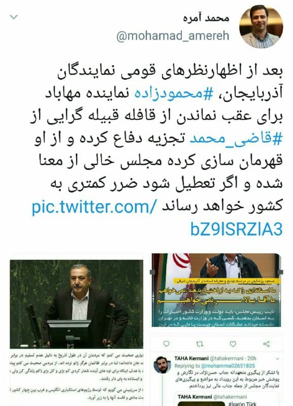 نکته آنجاست که یاوه سرایی های این تجزیه طلب پانکرد که صدای گروهک های تروریستی و تجزیه طلب پانکردی همچون پژاک و پ.ک.ک و نیز گروهک های ترویستی دمقراط و کومله شده است، آن هم در تویله ی شورای اسلامی رژیم که از فیلتر نظارت استصوابی آیت الله ها بیرون آمده است، نشانه ی هم دستی تجزیه طلبان ایران ستیز از بن و مایه با سرکردگان ولایت فقیه است. جمهوری اسلامی جز برای نابودی کشور و تکه پاره کردن ایران نیامده است و این هشداری بود که در آغاز شورش منحوس ۵۷ از سوی زنده یاد "شاهپور بختیار" داده شده بود که خمینی و خمینی زادگان برای نابودی ایران آمده اند و دریغا که ملت جادو شده ی الله زده ی خمینی پرست ما، هیچ سخن نیک را نشنید.